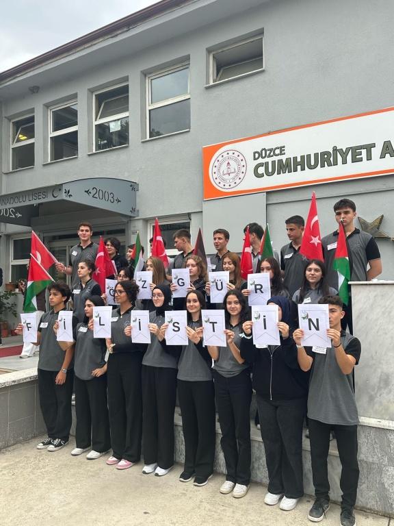 Filistin ve Gazze’deki insan hakları ihlallerinin sona erdirilmesine yönelik kararlı desteğimizi somut biçimde göstermek ve farkındalık oluşturmak amacıyla okulumuz öğrencileriyle “Özgürlüğün Adı Filistin Direnişin Adı Gazze” etkinliği düzenlenmiştir.